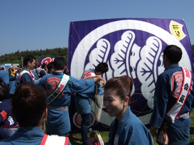 | 組長・会長も一緒に入って撮ります。 「当日はきれいに揚げてくださいね!」 | ![]() |
