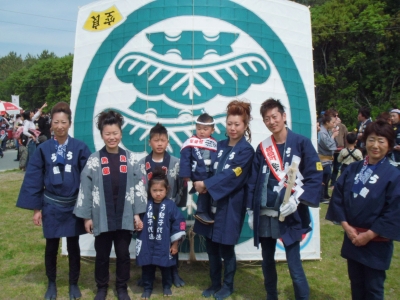 無事につけ終わりました。 組長より祝凧贈呈。 おめでとうございます。 |