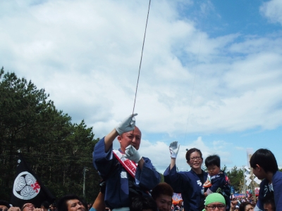無事につけ終わりました。 組長より祝凧贈呈。 おめでとうございます。 |