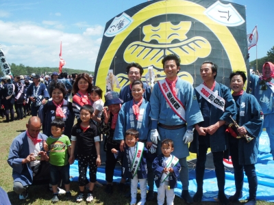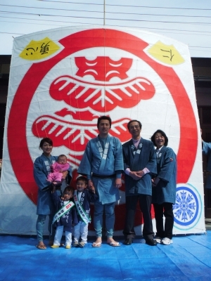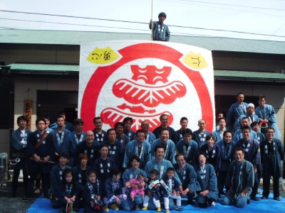 無事につけ終わりました。 組長・会長より祝凧の贈呈。 おめでとうございます。 |
