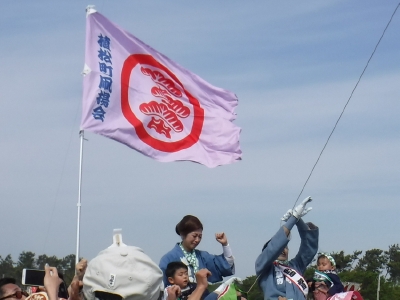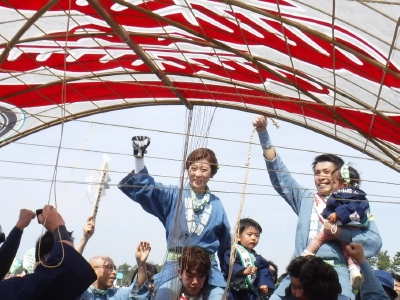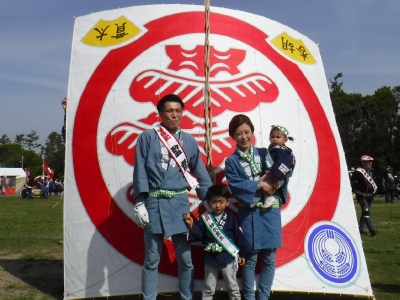 無事につけ終わりました。 祝い凧の贈呈です。 |